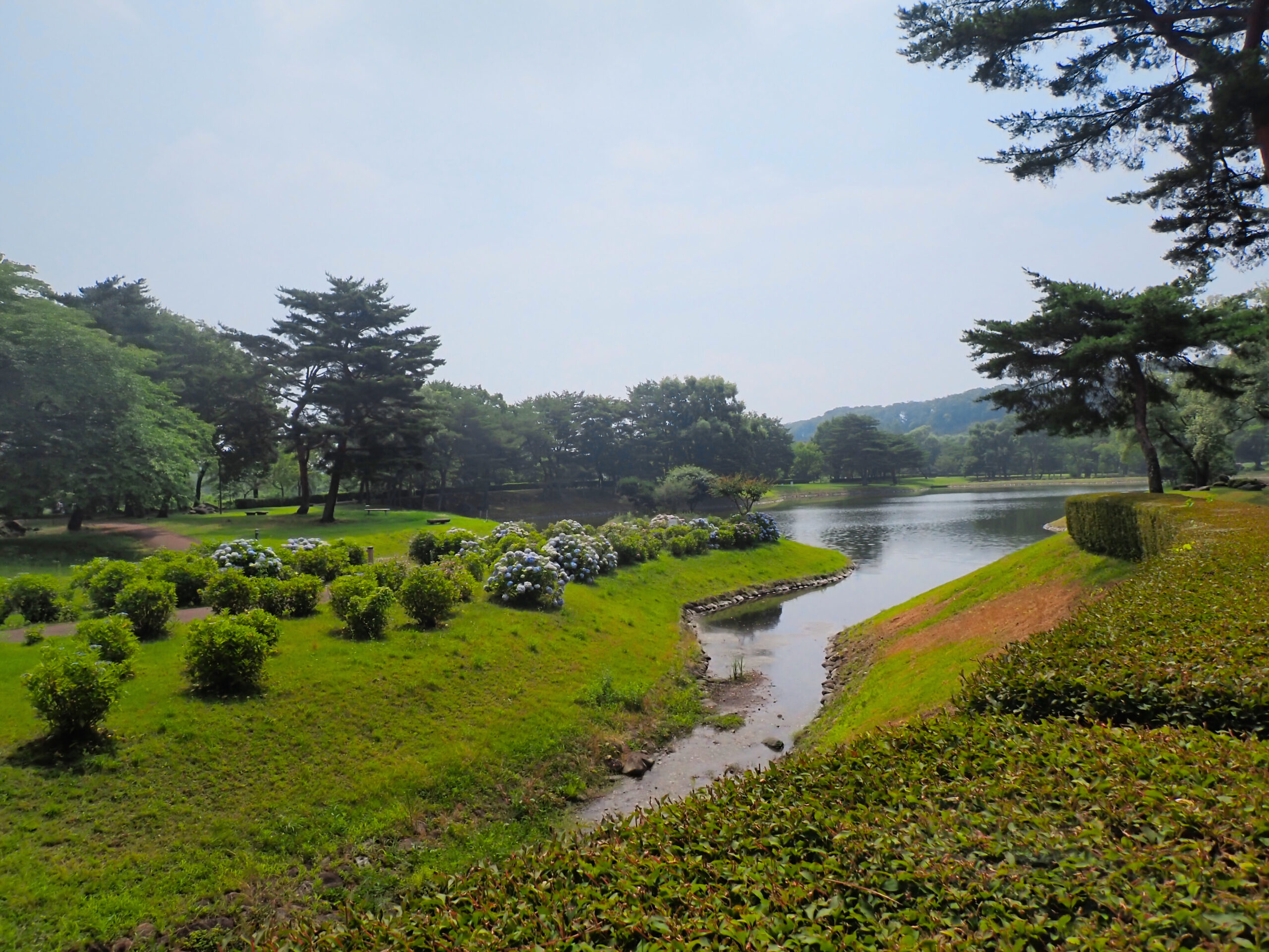 園内に一歩足を踏み入れると、そこには水路や大きな池、池から流れ出す小川、湿地、芝生、草地、そして木々が連なる小さな林が複雑に入り組んでいます。