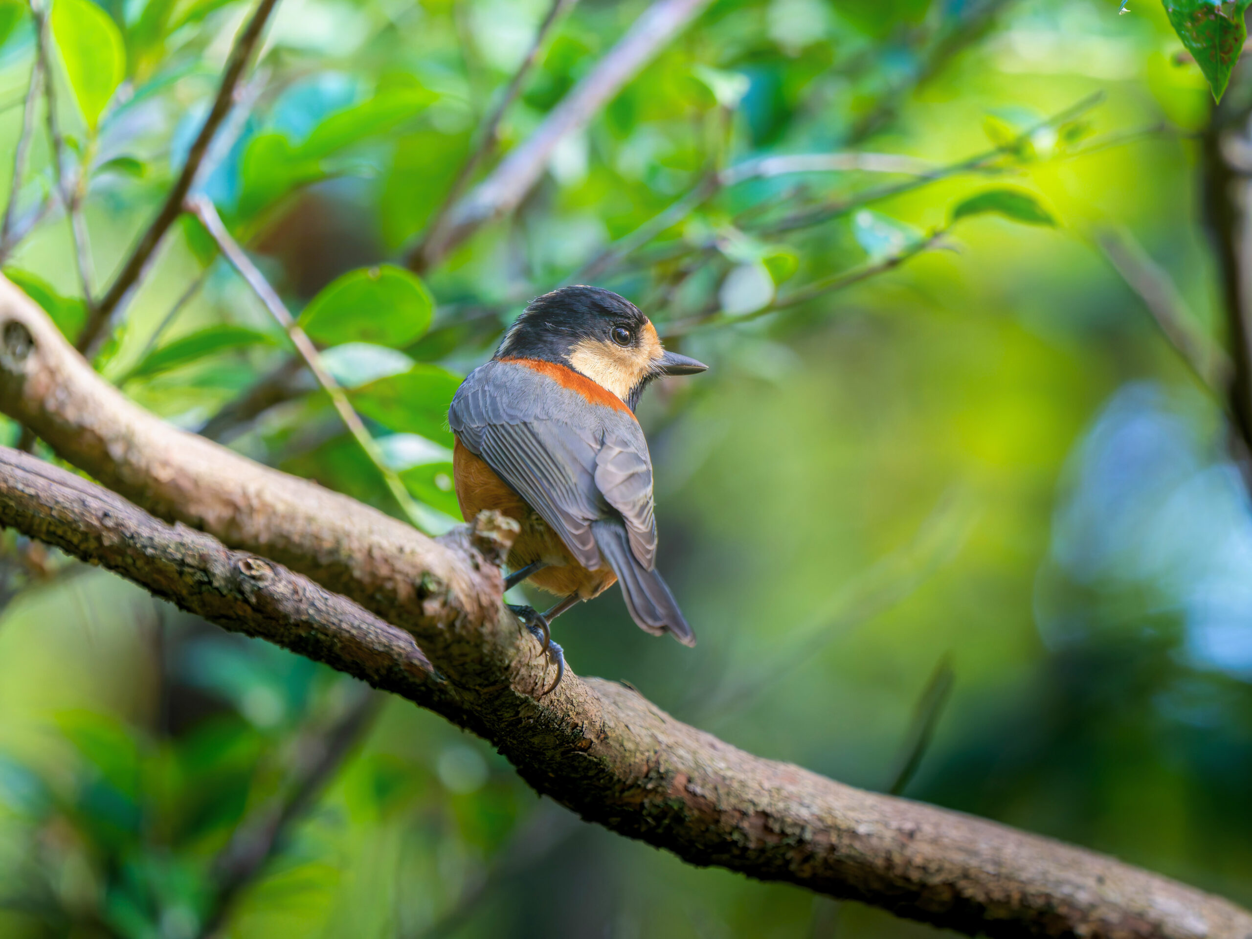 林床から樹の幹へ、そして樹冠へと視線を移すと、生命の躍動がさらに見えてきます。特にこのキャンプ場は、「鳥野目」という名がつくほど、野鳥の観察が楽しい場所でもあります。林の中では、野鳥が葉の間を忙しなく飛び回り、さえずりが響き渡ります。